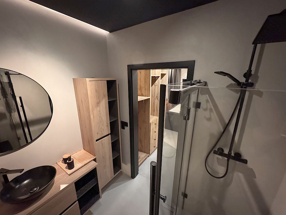 • garderoba w przejściu między sypialnią a łazienką,