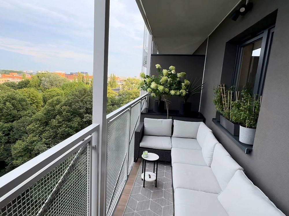 ✔ 11-metrowy, urządzony balkon z widokiem na zieleń