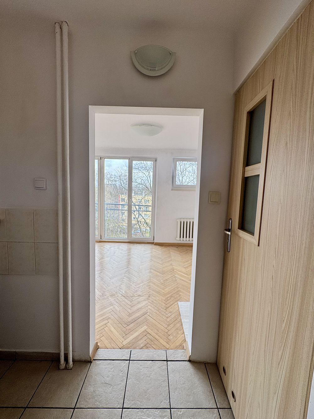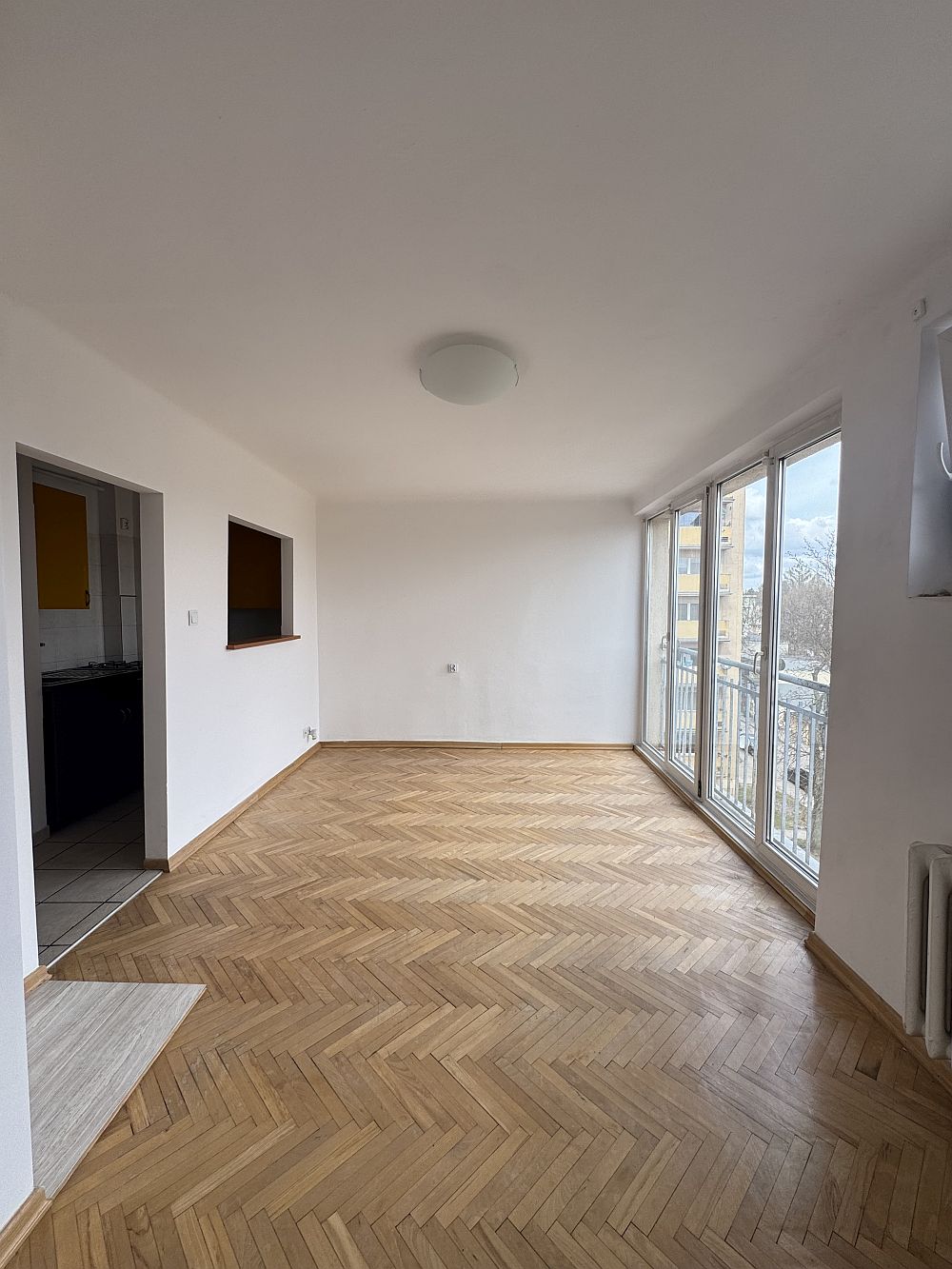 Dodatkowo mieszkanie jest bardzo jasne dzięki dużemu, 4-skrzydłowemu oknu od podłogi do sufitu. Wschodnia wystawa zapewnia przyjemne światło od rana.