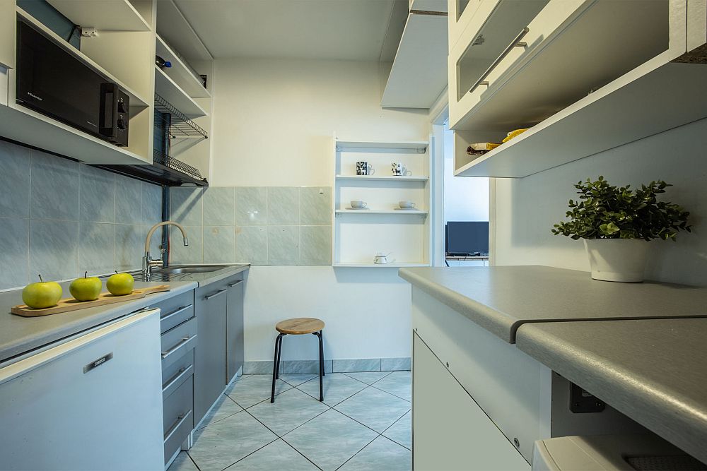 Kuchnia jest ustawna i oferuje dużo miejsca do przechowywania – liczne, pojemne szafki oraz spora powierzchnia robocza stanowią jej duży atut. Istnieje możliwość połączenia kuchni z salonem i stworzenia większej, otwartej przestrzeni dziennej.