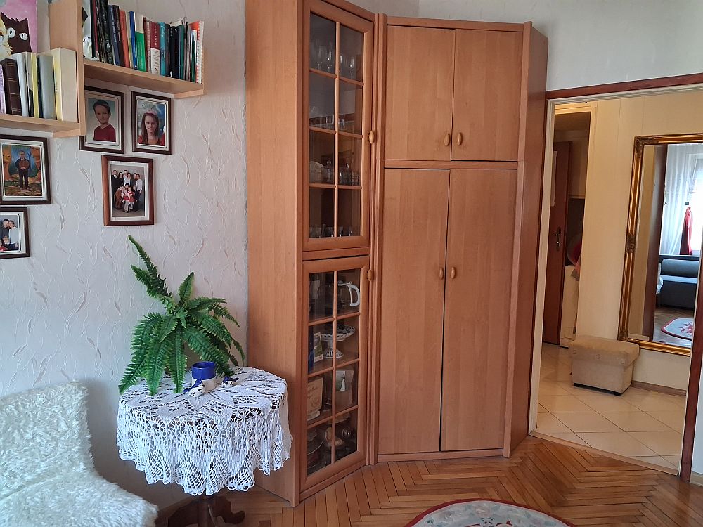 Na podłogach znajduje się ładny, drewniany parkiet ułożony w jodełkę, który nadaje mieszkaniu przytulności.