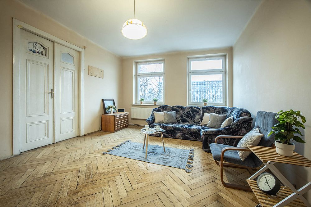 Mieszkanie jest w stanie do remontu, co daje możliwość urządzenia wnętrz zgodnie z własnym gustem i oczekiwaniami. Okna PCV zapewniają dobrą izolację cieplną i akustyczną.